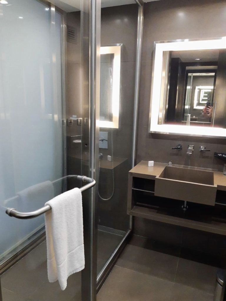 Cuenta con cafetera Nespresso, pava eléctrica para hacer té, y las comodidades de cualquier habitación como caja fuerte, frigobar, TV y baño con ducha. Obviamente también hay Wi-Fi libre y se puede pedir room service.