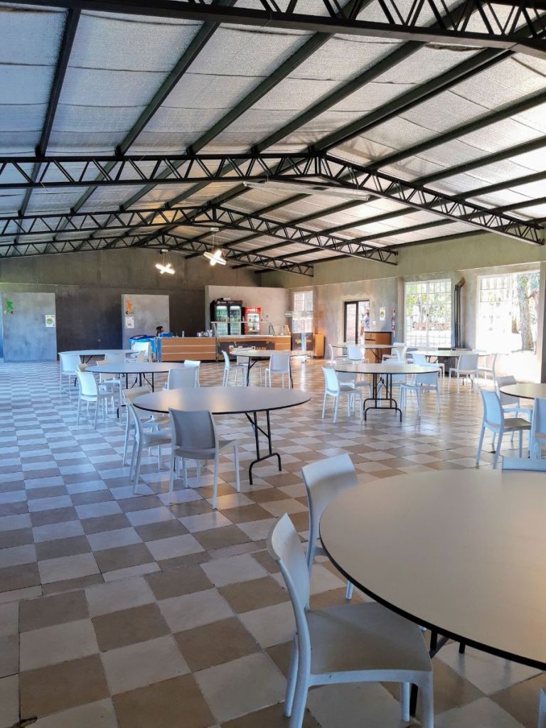 El predio es muy grande y hay una zona de mesas con sombrillas o sombra de los árboles para poder comer. También se pueden llevar lonas y reposeras y acomodarse donde uno desee. Y se puede ir con comida o bien comprar en el buffet, que tiene incluso opciones para vegetarianos y celíacos.