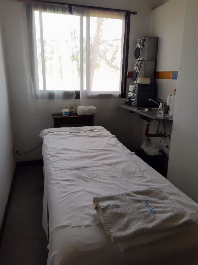 Además, hay un spa y se puede sacar turno para masajes y para el circuito hídrico que consta de jacuzzi, sauna y ducha escocesa. Al terminar el circuito, hay una sala de relax con té y jugo.