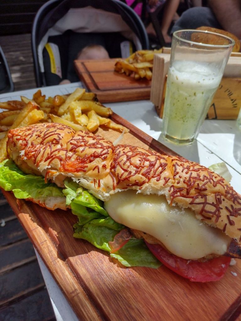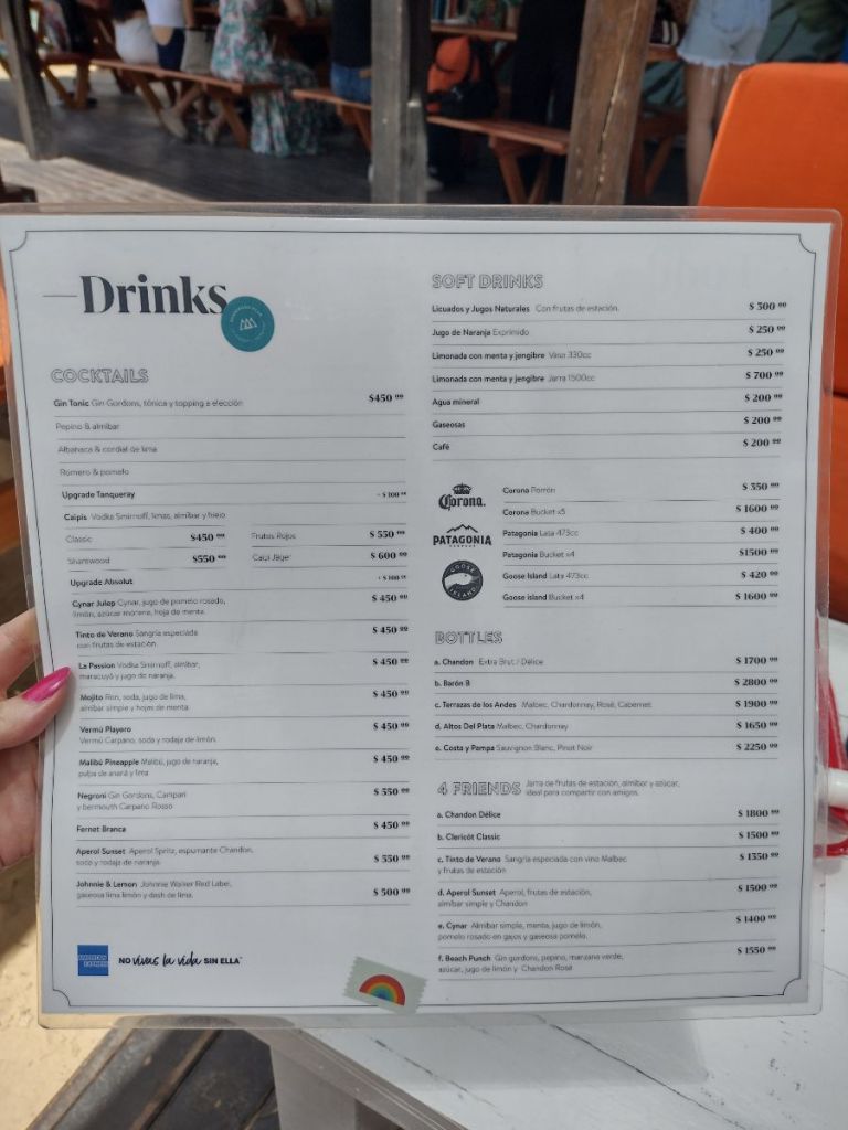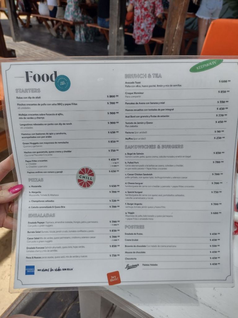 La carta es variada y con precios normales para desayunar, almorzar o merendar. Nosotros pedimos un sándwich gigante de pollo, una hamburguesa, una ensalada, y rabas! Porque no hay nada que me haga sentir más en la playa que las rabas De postre, paletas heladas de Luccianos.
