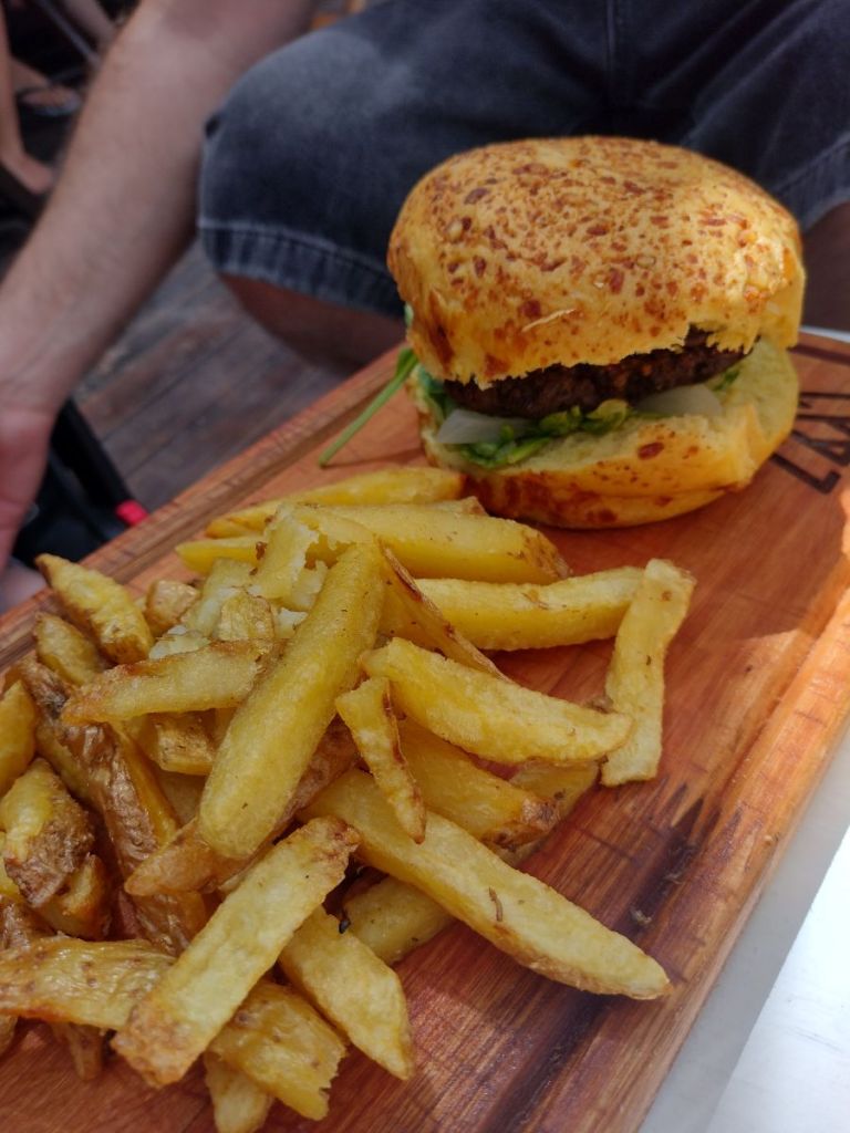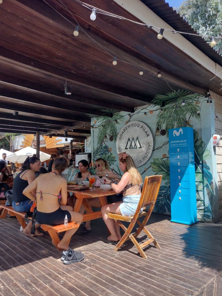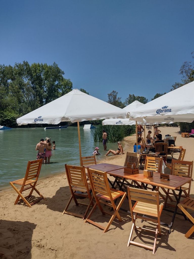Fuimos a Sharewood, un restaurante y bar muy particular porque se puede comer, ir a tomar algo, pero además tiene playa artificial y Wakepark!