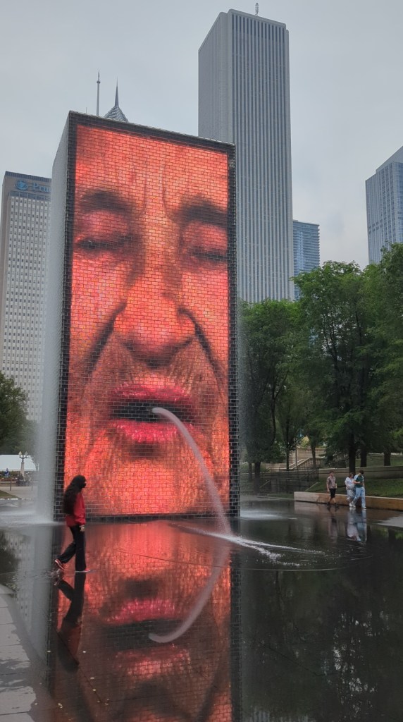 - Crown Fountain: dos torres digitales que proyectan caras gigantes y en verano largan agua.